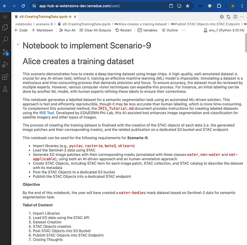 This post presents User Scenario 7 of the AI/ML Enhancement Project, titled “Alice describes her trained ML model”. It demonstrates how the enhancements being deployed in the Geohazards Exploitation Platform (GEP) and Urban Thematic Exploitation Platform (U-TEP) will support users on describing an ML model using the STAC format and the ML-dedicated STAC Extensions.