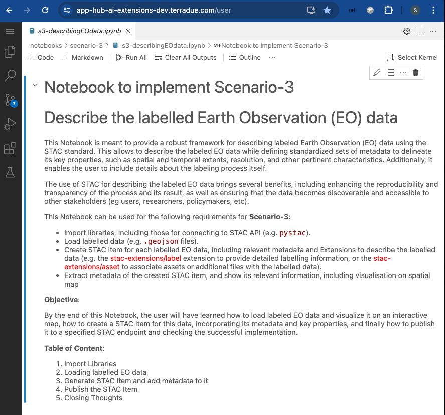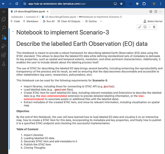 This work demonstrates the new functionalities brought by the AI/ML Enhancement Project to support a ML practitioner on describing an ML model using the STAC format. The activities covered are listed below: